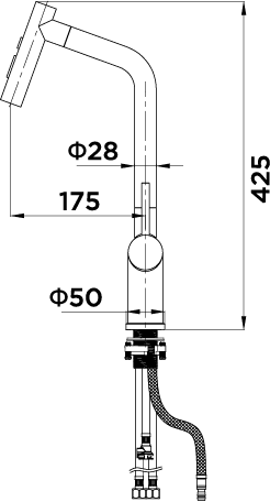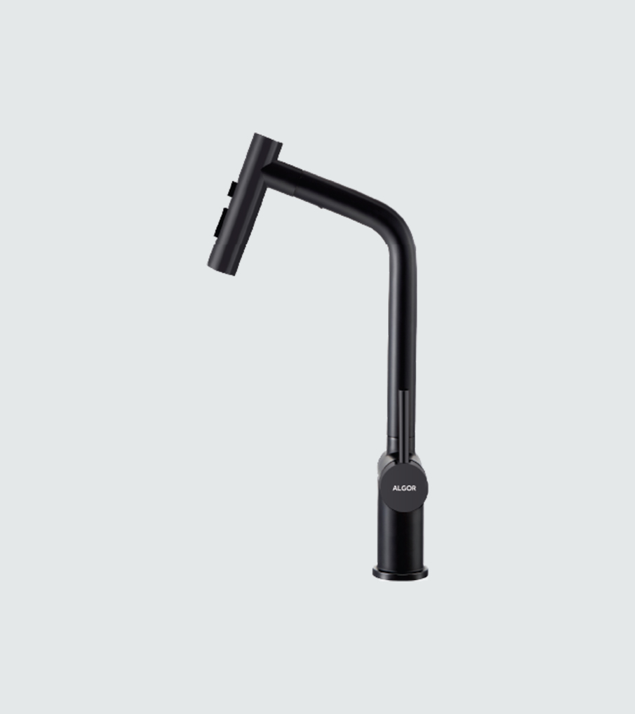 Algor black faucet made of zinc and stainless steel outlet pipe. The best ally to keep your kitchen in line with the latest decor trends.
