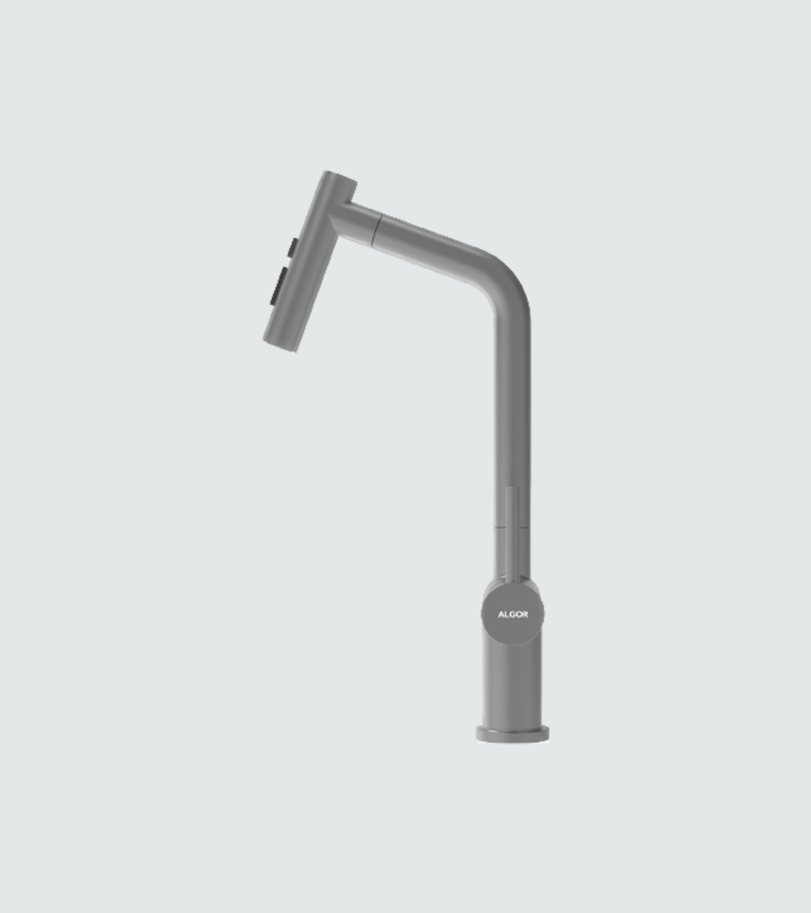 Bring a distinctive touch to your kitchen with this elegant kitchen faucet made of zinc and including a stainless steel outlet pipe. The piece features an iconic grey finish to match the most modern kitchen layouts.