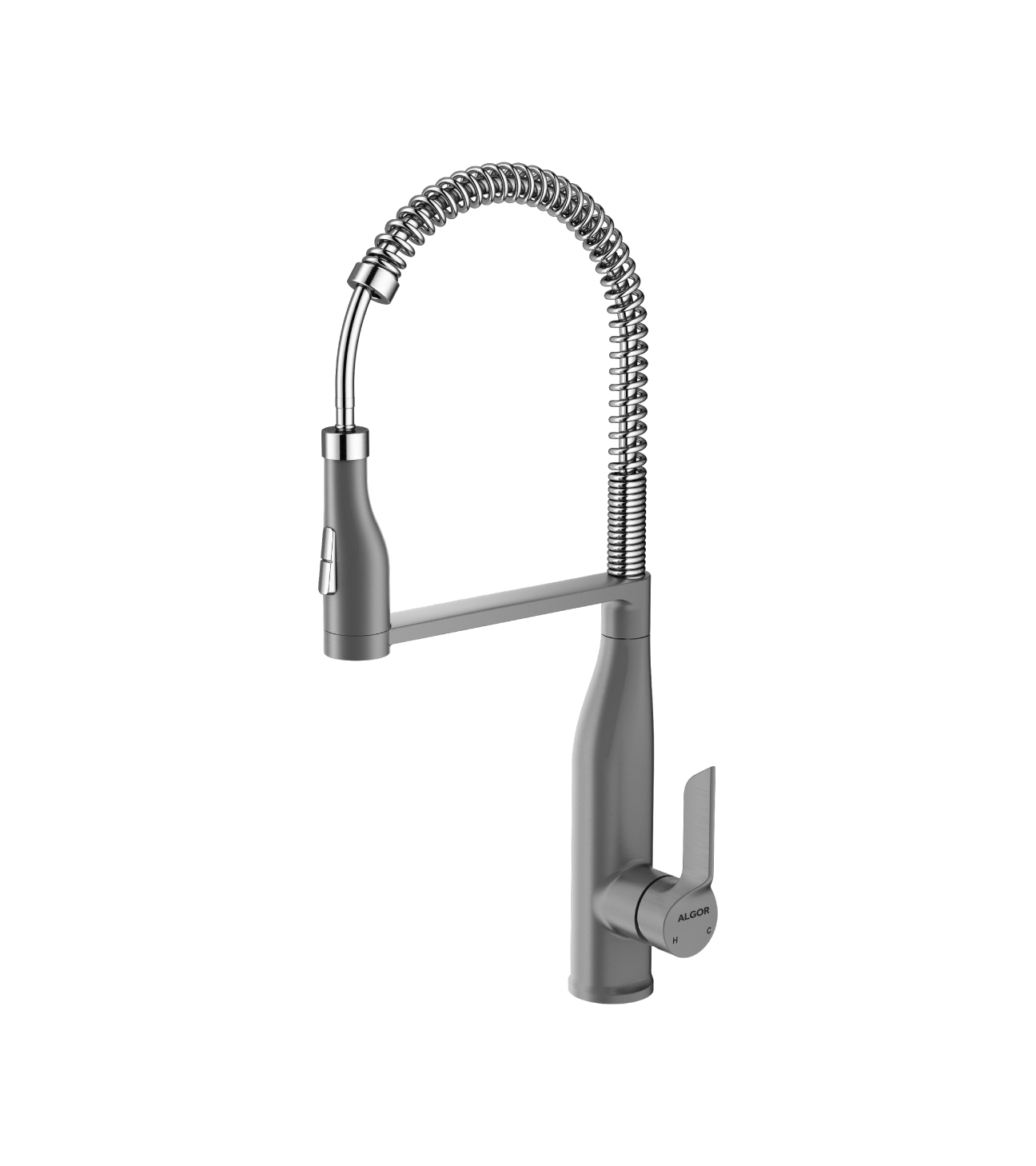 The Algor A980-173 Mixer Tap showcases a refined PVD grey finish crafted from zinc-coated, lead-free brass. Its elegant design and durable build make it a perfect blend of style, safety, and reliability for contemporary kitchen.