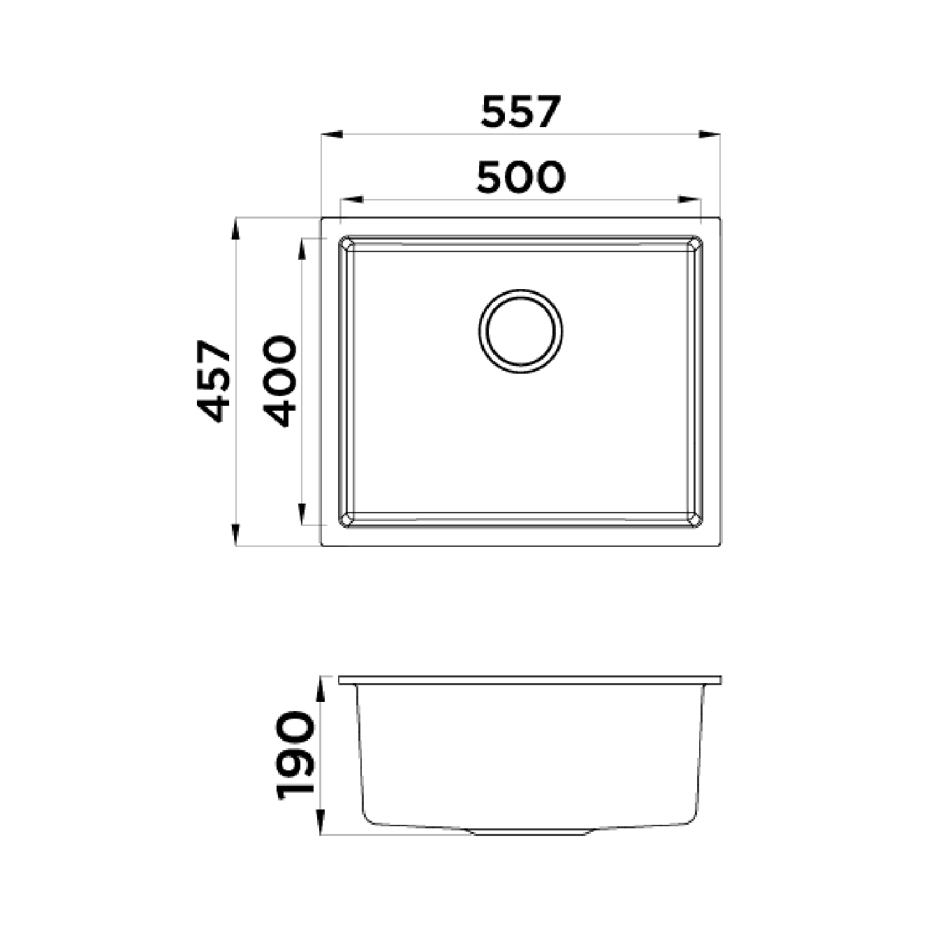 • Undermount: 515 x 410 mm x R15