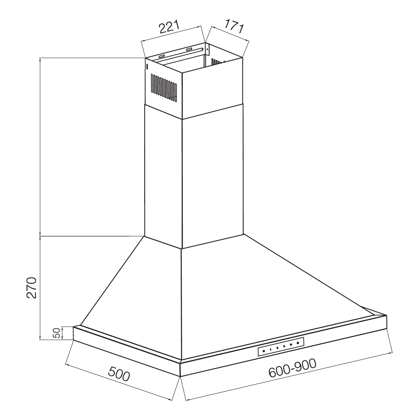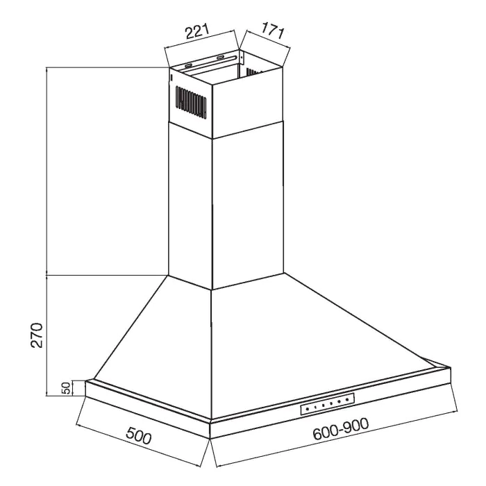Pyramid hood in stainless steel design offering touch control and 3 speeds.