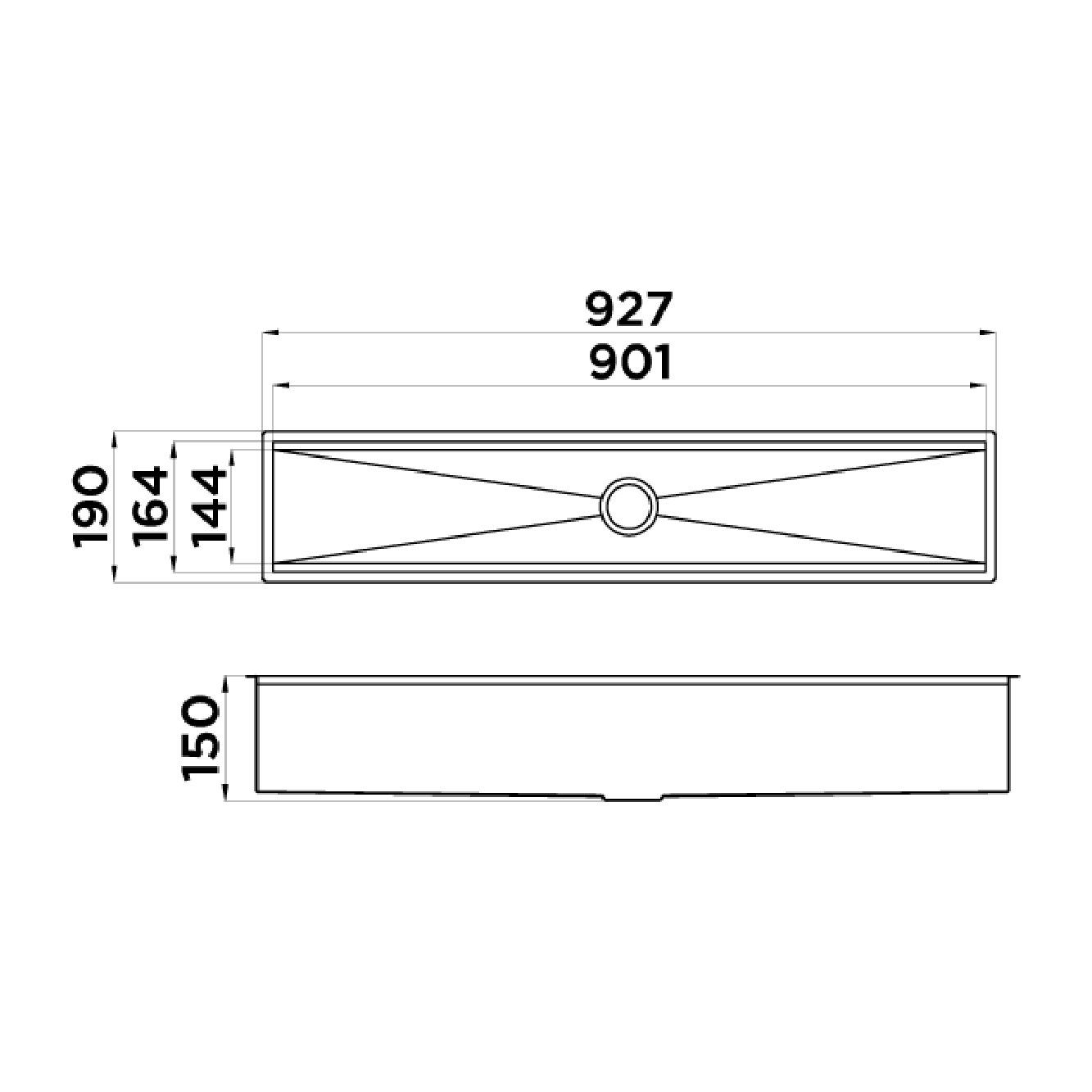 • Undermount: 904 x 167 mm