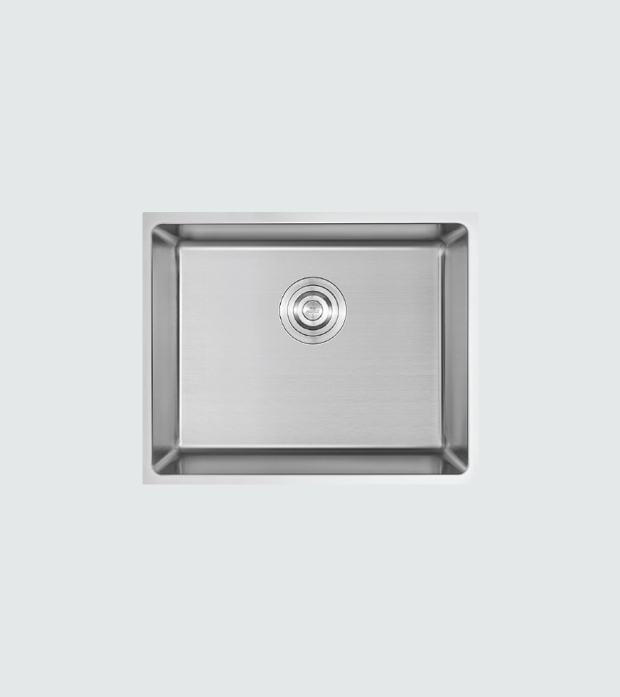 Description: Single bowl sink featuring sound pad and undercoating, offering 1.0 mm thickness and brushed surface finish.